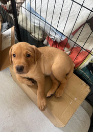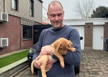 Archie wiegt jetzt Anfang der 5. Woche etwas 3 kg und ist ein recht stattlicher Bursche. Er ist sehr neugierig, immer gut drauf und weiß auch, was er will. Ich übe jeden Tag mit ihnen auf meinen Fliesen und lasse sie etwas die Gegend erkunden. Ich finde, er ist echt ein richtig gelungener Rüde mit schönem Pigment und einem tollen Kopf mit kurzem Stopp. Ich bin ganz gespannt, wie er sich weiter entwickelt. Archie ist echt ein Musterknabe, er hört schon recht sicher auf den "Komm pfiff", die Damen haben manchmal andere Gedanken.